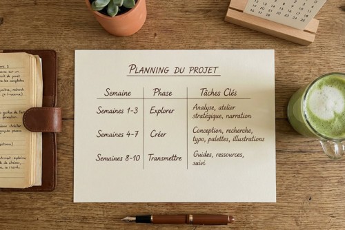 pertinentes, révéler les interactions chromatiques qui enrichissent votre univers, intégrer les critères d’accessibilité et composer deux palettes complémentaires : la palette principale et l’écopalette dédiée aux supports print responsables.
